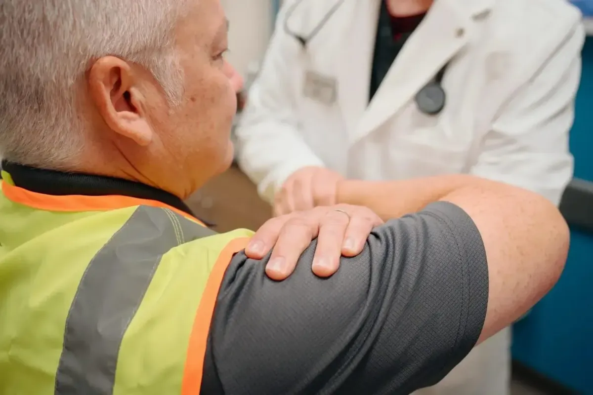 The exam includes a medical history review, vision and hearing tests, blood pressure and vital signs, urinalysis, and a full physical evaluation. Bring a valid photo ID, any corrective lenses or hearing aids, a list of current medications, and relevant medical records.
